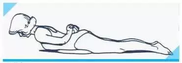 上半身如圖示位置,保持髖關(guān)節(jié)緊貼地面,同時(shí)保持下腰部及臀部放松。